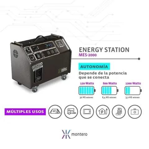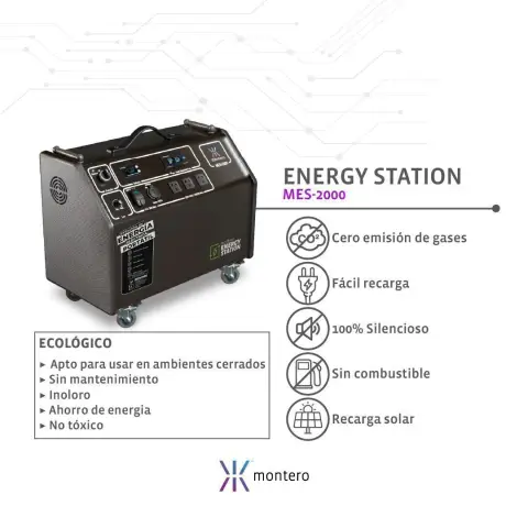 Es una estación de energía eléctrica portátil, de uso fácil y totalmente libre de mantenimiento. MES-2000 es un producto silencioso y ecológico (sin combustible, sin olor, sin emisión de gases).